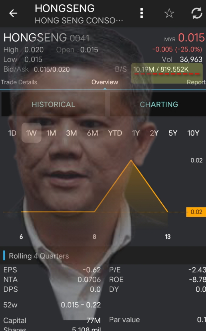 WHY is this conversation important today? Well for the past three trading days, at least there has been a 10 million BUY que on Hong Seng Consolidated Bhd shares, yet the stock is nearly at the end of the road trading at 1.5 sen.